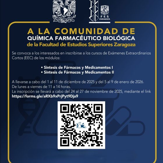 La Carrera de QFB invita al estudiantado a registrarse en los Cursos Intersemestrales que se llevarán a cabo en enero de 2026.